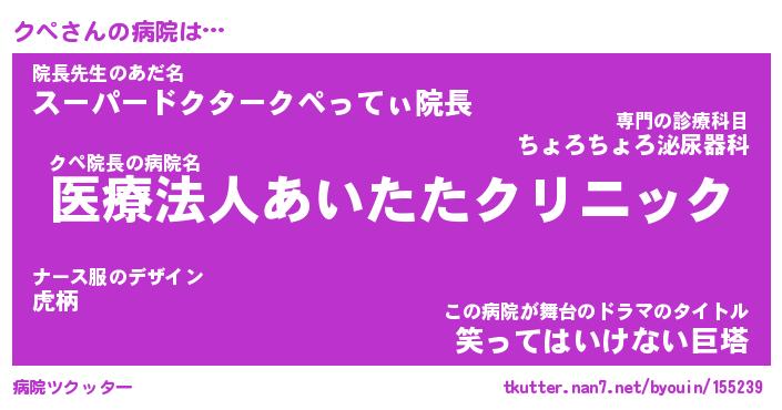 | 2回繰り返すあだ名 | 『クペクペ』『ククペペ』『にたにた』 |