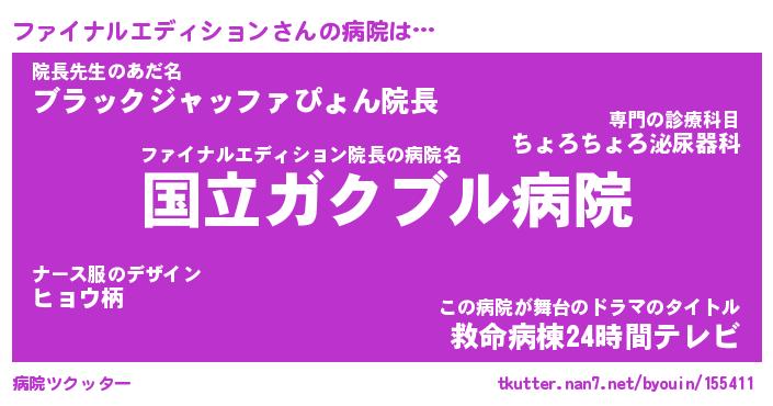| 女子向けラノベタイトル風あだ名 | 『(仮)ファイナルエディションのやんごとなき事情』 |