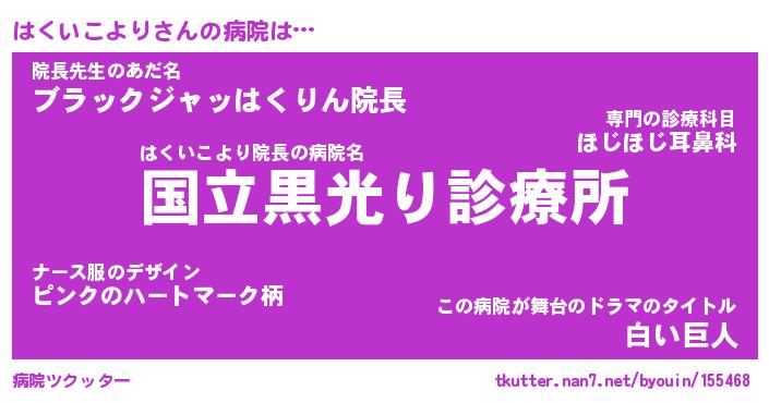 | 男性向けラノベタイトル風あだ名 | 『はくいこよりの憂鬱』 |