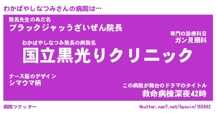 | 胡散臭い通販商品みたいなあだ名 | 『必ず成功するブレスレット…その名も「わかばやしなつみ」』 |