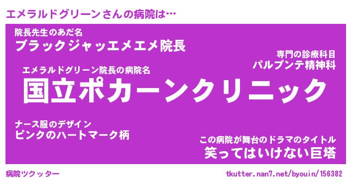 | 男性向けラノベタイトル風あだ名 | 『エメラルドグリーンの憂鬱』 |