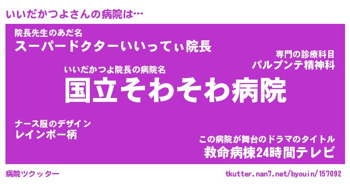 | 2回繰り返すあだ名 | 『いいいい』『いいいい』『いそいそ』 |