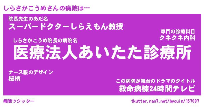 | 恥ずかしいあだ名 | 『プリティーしらさかこうめ』『しらちん』 |