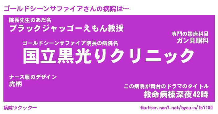 | 男性向けラノベタイトル風あだ名 | 『ゴールドシーンサファイアの憂鬱』 |