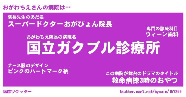 | 2回繰り返すあだ名 | 『おがおが』『おおがが』『いそいそ』 |
