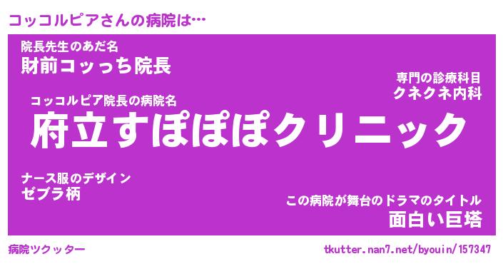 | 男性向けラノベタイトル風あだ名 | 『コッコルピアの憂鬱』 |