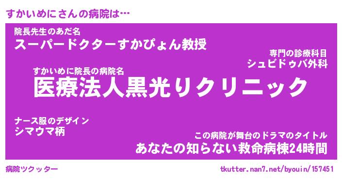 | ツイッター | すかいめにさんのツイッターID『namakemono_man』 |
