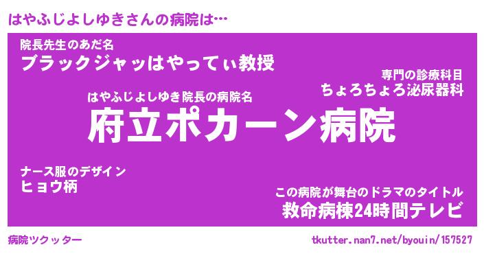 | 男性向けラノベタイトル風あだ名 | 『はやふじよしゆきの憂鬱』 |