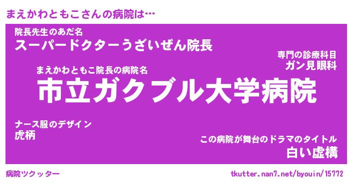 | 男性向けラノベタイトル風あだ名 | 『まえかわともこの憂鬱』 |