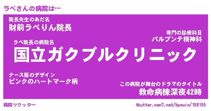 | ヘコむあだ名 | 『ラペにゅー』『酢こんぶ』 |