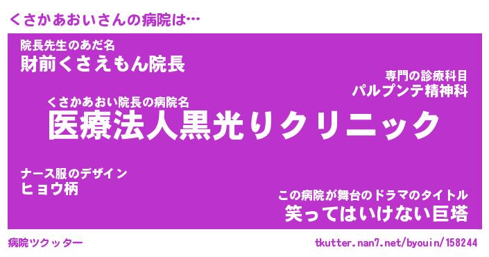 | 伝説のあだ名 | 『封印されし竜騎士くさかあおい』 |