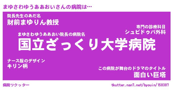 | 伝説のあだ名 | 『伝説のスナイパーまゆさわゆうああおい』 |