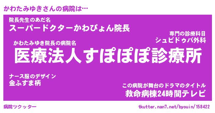 | 胡散臭い通販商品みたいなあだ名 | 『億万長者になれる霊験あらたかなお札…その名も「かわたみゆき」』 |