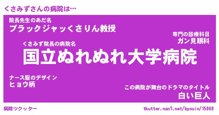 | 2回繰り返すあだ名 | 『くさくさ』『くくささ』『ぬらぬら』 |