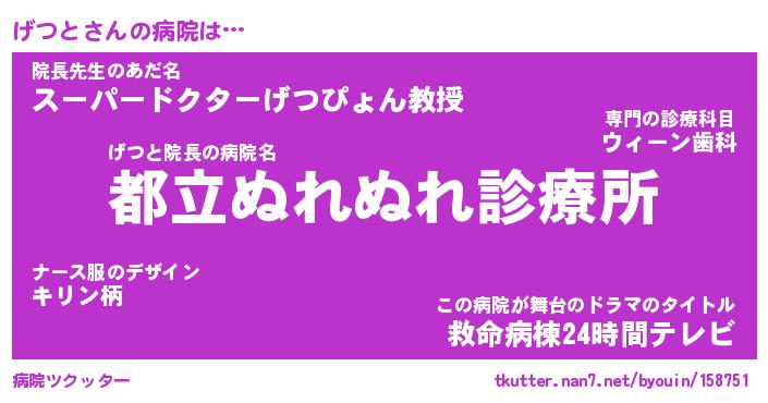 | 2回繰り返すあだ名 | 『げつげつ』『げげつつ』『ぬるぬる』 |