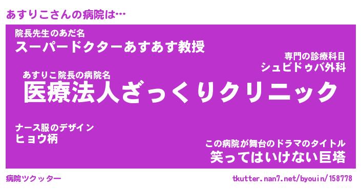 | 意味不明あだ名 | 『ペロリンあすりこ』『永久保存あすりこ』 |