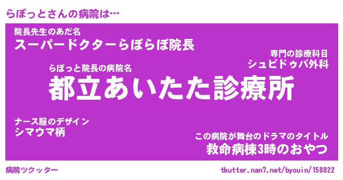 | ヘコむあだ名 | 『らぼっふぃ~』『牛乳』『らぼっ子』 |