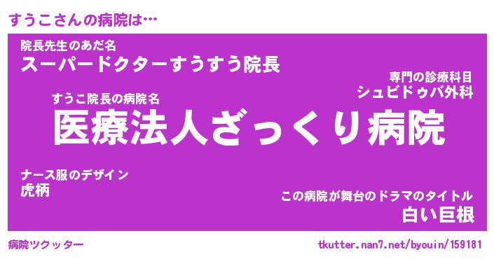 | 胡散臭い通販商品みたいなあだ名 | 『億万長者になれる霊験あらたかなお札…その名も「すうこ」』 |