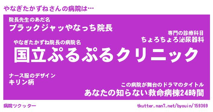 | 肩書あだ名 | 『やなぎたかずね店長』 |