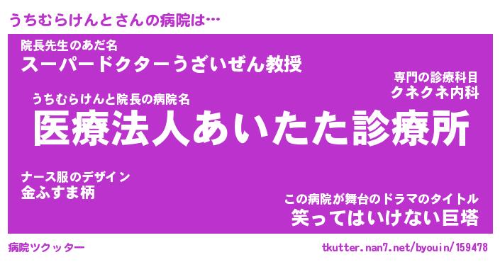 | 伝説のあだ名 | 『不死鳥のスナイパーうちむらけんと』 |