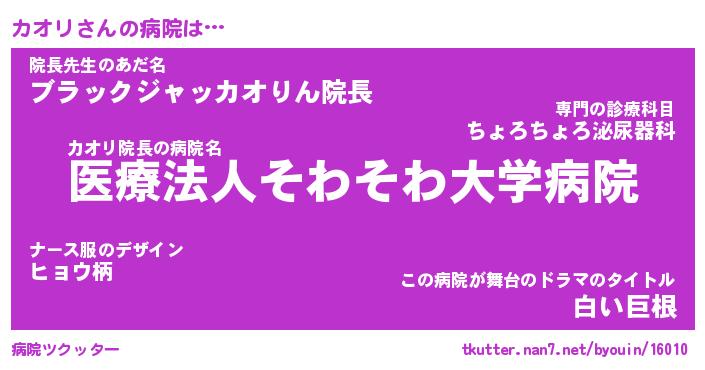 | 意味不明あだ名 | 『ペロリンカオリ』『カオリフォーエバー』 |