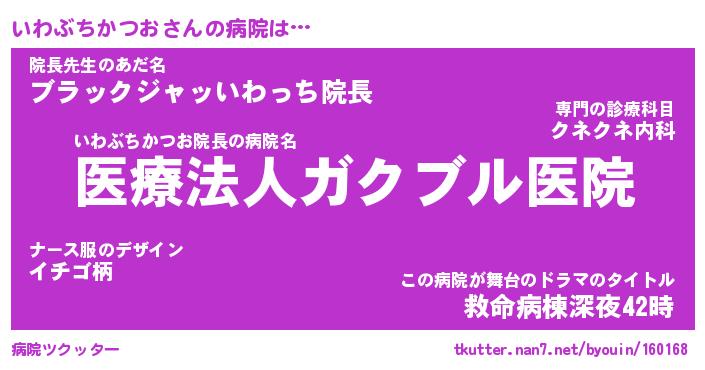 | ヒーロー風カッコイイあだ名 | 『スーパーイワブチカツオ』 |