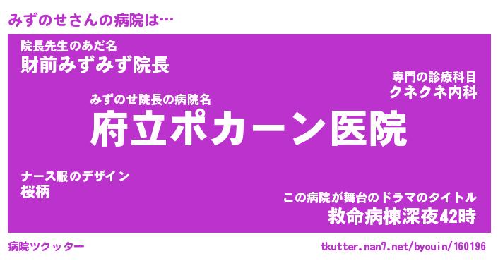 | ヘコむあだ名 | 『みずにゅー』『酢こんぶ』『みずを』 |