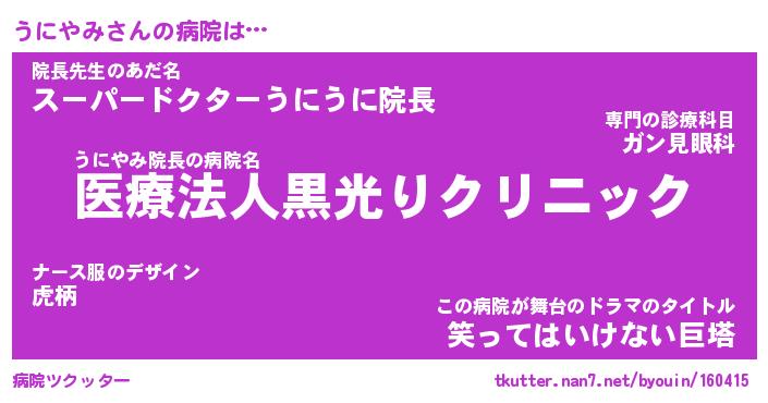 | ヒーロー風カッコイイあだ名 | 『スーパーウニヤミ』『暗黒騎士ウニ』 |
