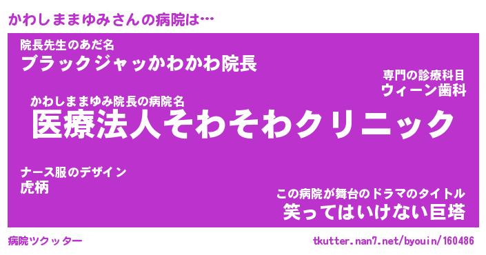 | ヒーロー風カッコイイあだ名 | 『スーパーカワシママユミ』 |