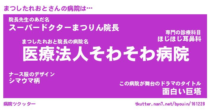 | 恥ずかしいあだ名 | 『プリティーまつしたれおと』『まつちん』 |