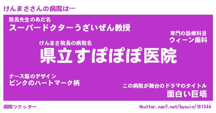 | 意味不明あだ名 | 『ペロリンけんまさ』『永久保存けんまさ』 |