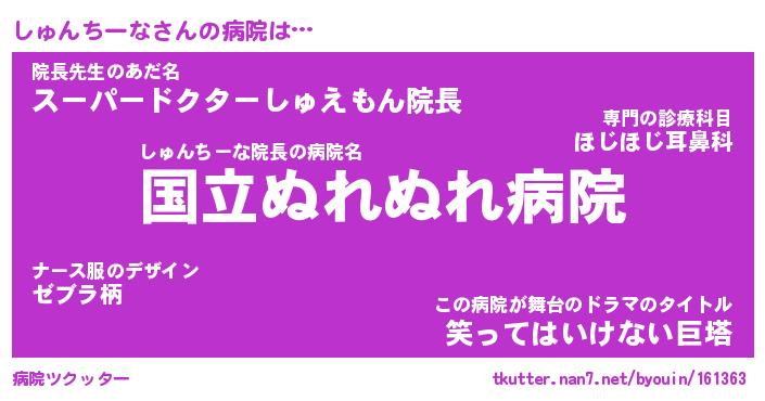 | 2回繰り返すあだ名 | 『しゅしゅ』『ししゅゅ』『ぬれぬれ』 |