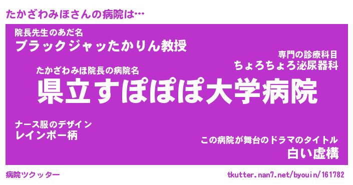 | 恥ずかしいあだ名 | 『プリティーたかざわみほ』『たかっちょ』 |