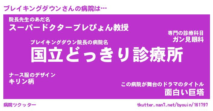 | 男性向けラノベタイトル風あだ名 | 『ブレイキングダウンの憂鬱』 |