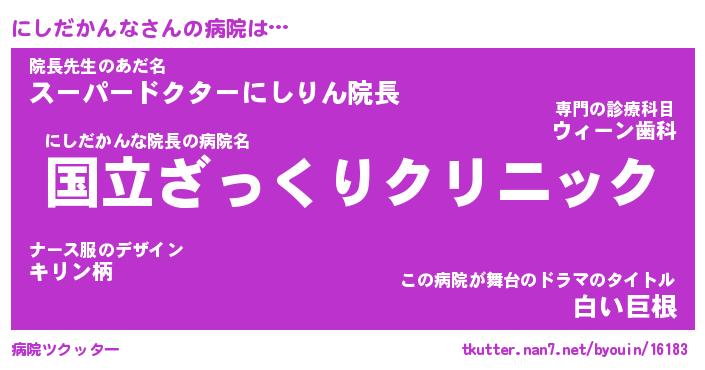 | ヘコむあだ名 | 『にしもー』『酢こんぶ』『にし太郎』 |