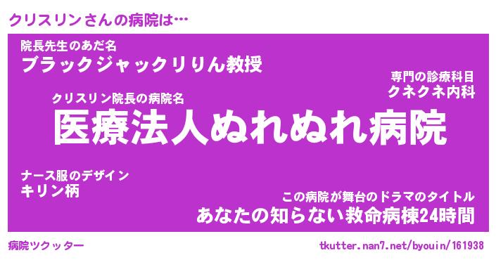 | ヒーロー風カッコイイあだ名 | 『スーパークリスリン』『幻影騎士クリ』 |