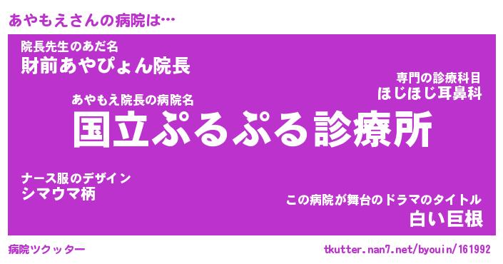| ヘコむあだ名 | 『あやにゅー』『なまこ酢』 |
