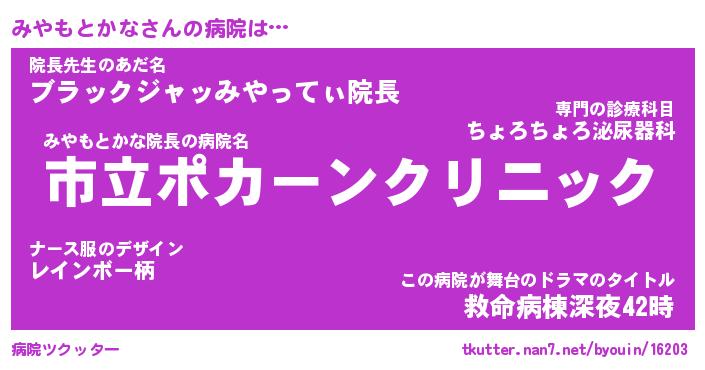 | ファンタジー風あだ名 | 『ミヤフェル』『ファントムミヤス』 |