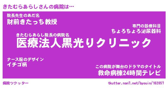 | 胡散臭い通販商品みたいなあだ名 | 『億万長者になれるブレスレット…その名も「きたむらあらし」』 |