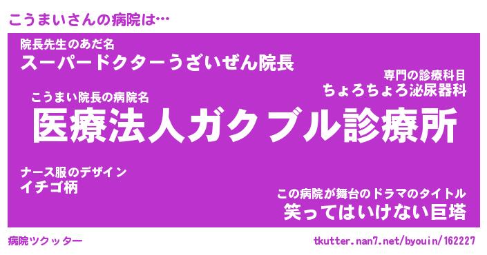 | 2回繰り返すあだ名 | 『こうこう』『ここうう』『ぎとぎと』 |