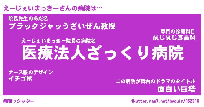 | 欧米人風あだ名 | 『マイケルえーじぇいまっきー』 |
