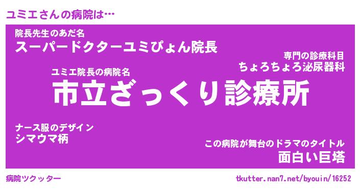 | 意味不明あだ名 | 『ペロリンユミエ』『ユミエフォーエバー』 |