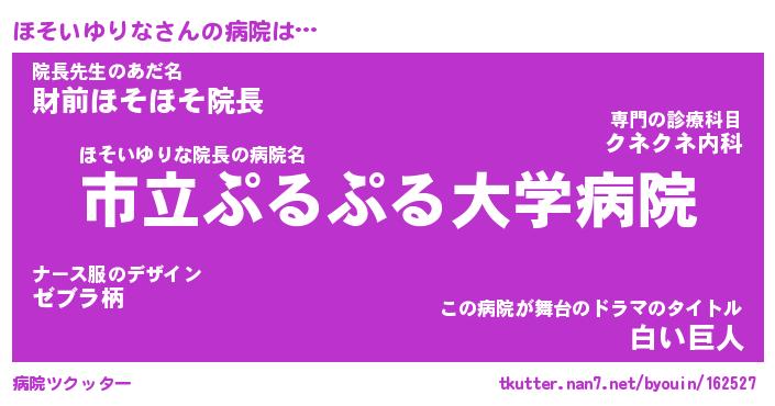 | 恥ずかしいあだ名 | 『プリティーほそいゆりな』『ほそっちょ』 |