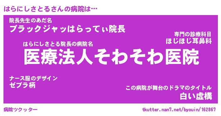 | ヒーロー風カッコイイあだ名 | 『スーパーハラニシサトル』 |