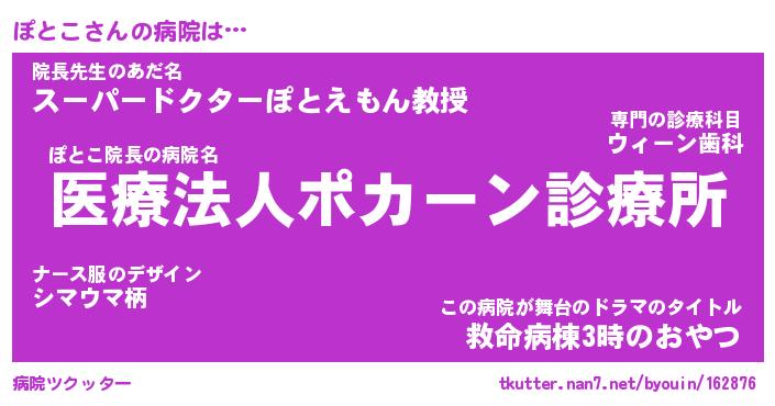 | ヘコむあだ名 | 『ぽともー』『つくし』『ぽとお』 |