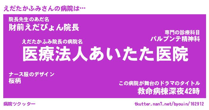 | 恥ずかしいあだ名 | 『プリティーえだたかふみ』『えだっちょ』 |