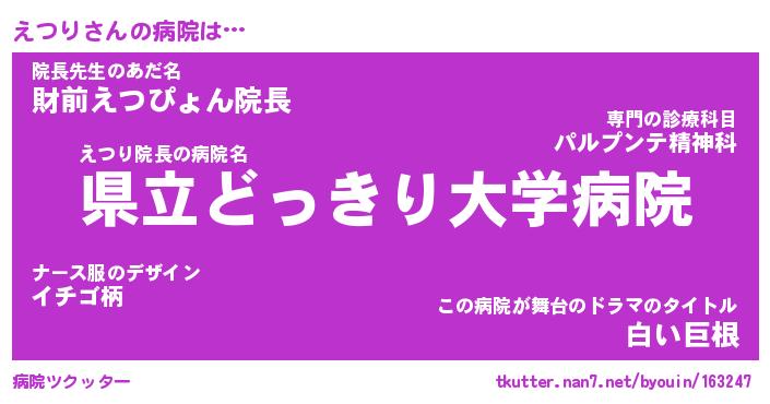 | 肩書あだ名 | 『えつり御曹司』『えつり国家主席』 |
