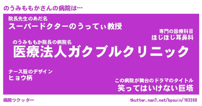 | 恥ずかしいあだ名 | 『プリティーのうみももか』『のうっちょ』 |