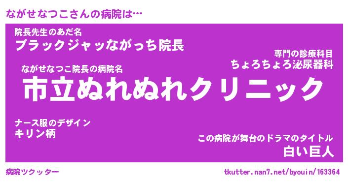 | 男性向けラノベタイトル風あだ名 | 『ながせなつこの憂鬱』 |