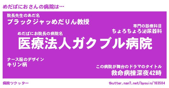 | ヘコむあだ名 | 『めだにゅー』『豆乳』『めだお』 |